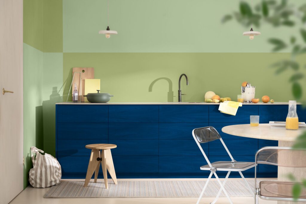Light indigo (Mellow Flow™ ) works brilliantly on walls in smaller rooms, creating an airy and an expansive feel without feeling cold. Whereas vibrant indigo (Free Groove™), shines as a feature wall or accent – think of a single wall in a bedroom nook or a painted vanity cupboard.